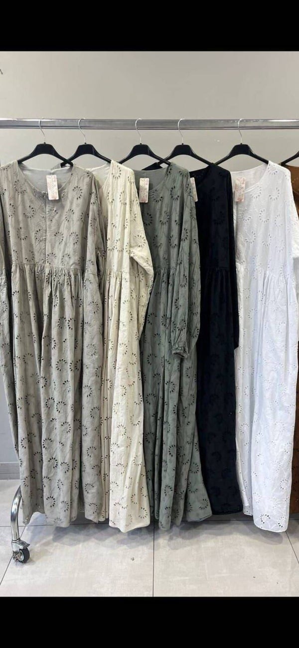 Diese stilvolle Abaya aus 100 % Baumwolle vereint Komfort, Schlichtheit und Eleganz. Die geöffneten Blumen im Design sind ein besonderer Blickfang dank eingearbeitetem Unterstoff jedoch nicht durchsichtig, sodass du dich jederzeit sicher und bedeckt fühlst.